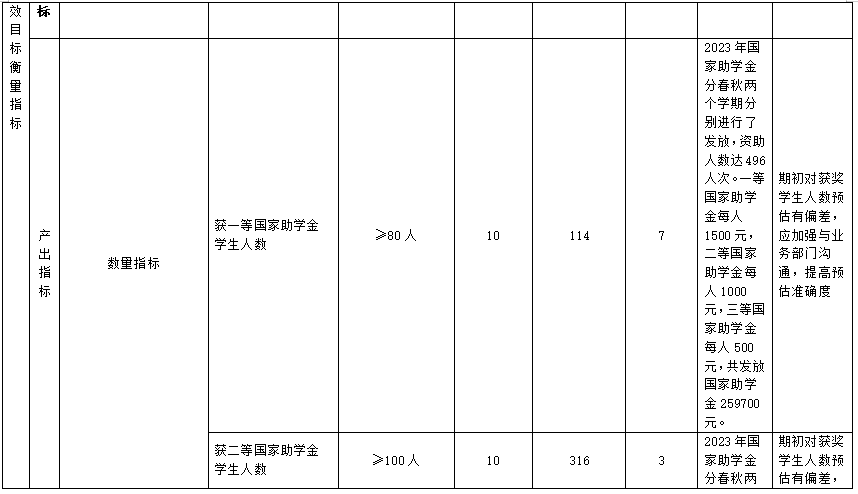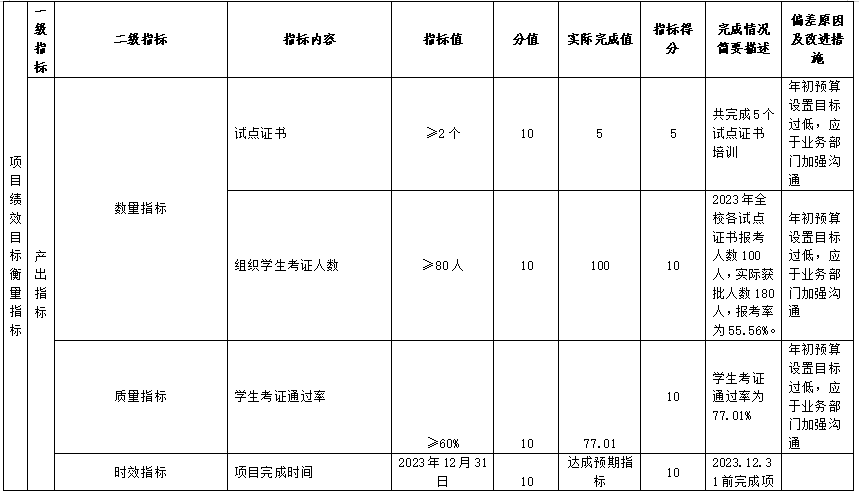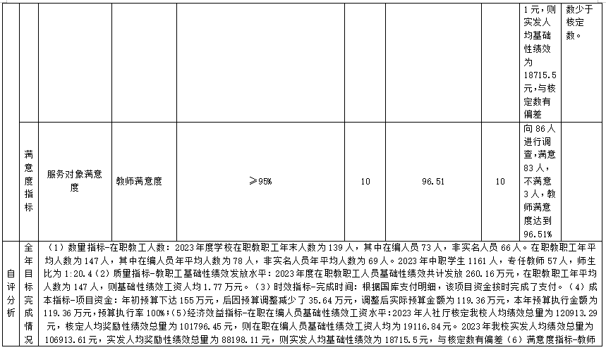 根据自治区财政厅要求,围绕学校的发展目标,结合学校经费开支和工作开展实际,组织对2023年度一般公共预算15个绩效目标项目开展自评,自评覆盖率达到100%。