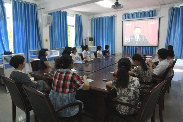 第一党支部成员认真观看习近平总书记讲话