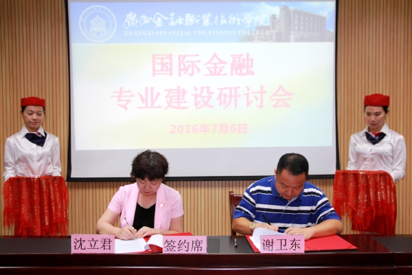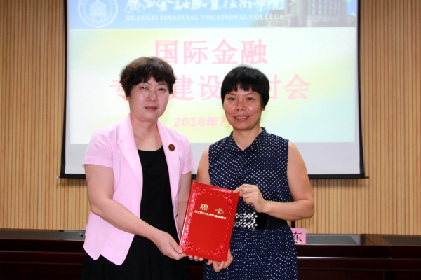 随后,学院与南宁代顿斯贸易有限公司进行校企合作签约仪式,沈立君院长向各位与会专家颁发了兼职教师的聘书。专家们分别表示愿意在今后为职业人才的培养贡献自己的力量。