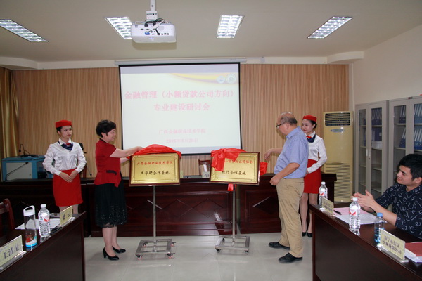 研讨环节结束后,沈立君院长与区小额贷款公司协会会长肖桂柳签署了校会战略合作协议,并一起为“kaiyun官方登录入口校会合作基地”和 “广西小额贷款公司协会校会合作基地”两块牌匾揭牌。