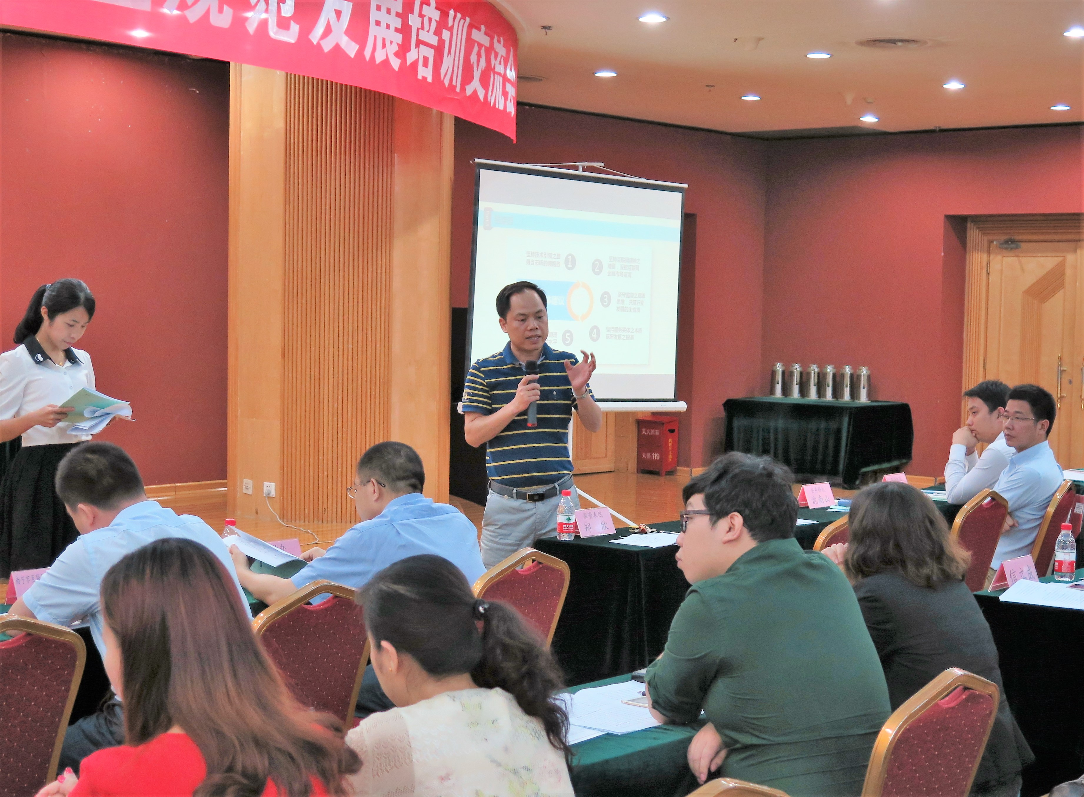 谢沛善副院长作为首位主讲嘉宾,为参会人员做了主题为“互联网金融规范发展探讨”的培训,跟大家分享了如何促进互联网金融健康发展。谢副院长指出要推动互联网与金融快速融合,必须促进金融创新,提高金融资源配置效率,激发市场活力,加强从业机构相互合作,实现优势互补。同时还应拓宽从业机构融资渠道,改善融资环境;推动信用基础设施建设,培育互联网金融配套服务和监管体系。