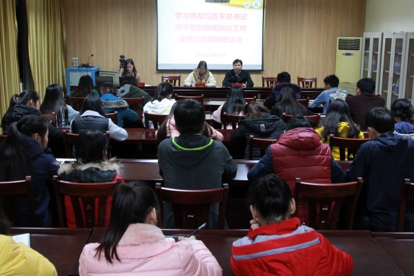 为学习贯彻习近平总书记关于党的新闻舆论工作重要讲话精神,让kaiyun新闻工作者深入了解习近平总书记对于新闻行业的重视和要求,认识新闻媒体的重要性,3月16号晚,kaiyun召开新闻工作者学习贯彻习近平总书记关于党的新闻舆论工作重要讲话精神座谈会。学院党委副书记、纪委书记刘华政,党政办公室副主任韩蓓丽,相关教师、通讯员代表及新闻媒体中心全体成员参加本次会议。党政办公室宣传科科长陶琳主持会议。