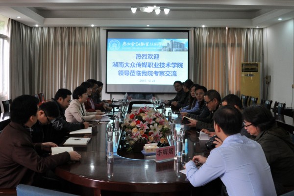 12月25日,湖南大众传媒职业技术学院一行9人到kaiyun交流考察,就两校间深化了解、加强合作展开交流。院长沈立君及相关单位负责人参加会议。