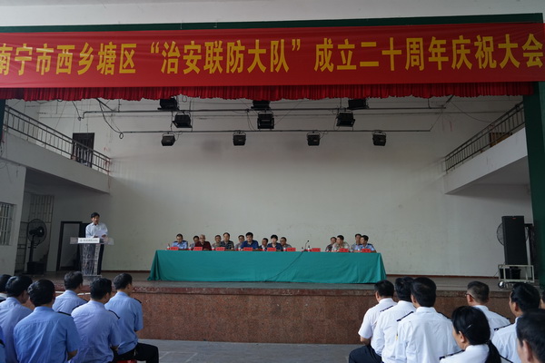 西乡塘联防队于一九九五年十月二十日在广西银行学校成立,是改革开放的新形势下南宁市成立最早的一支有章程、有协议、有组织的,比较规范的新型治安联防队伍。大队下辖7个中队、拥有500多名专职保卫人员。目前有广西金职院、广西农职院、广西华桥学校、广西科学院、广西机电职院等22个大、中专院校和科研单位参加。据不完全统计,二十年来,联防大队共抓获各类犯罪嫌疑人并移交公安机关处理的有600多人,制止各种违法人员一千多人次,缴获被盗单车、电动车、摩托车、小桥车、电脑、手机、彩电等260多辆和台次;收缴各类管制刀具、砂枪、仿真枪、催泪弹等300多件及一大批作案工具;破获毁坏路树、盗窃路面井盖,以及抢夺等案件,挽回财物损失约900多万元。极大地震慑了违法犯罪分子,受到辖区人民的高度赞扬和上级政法机关的多次表彰奖励。