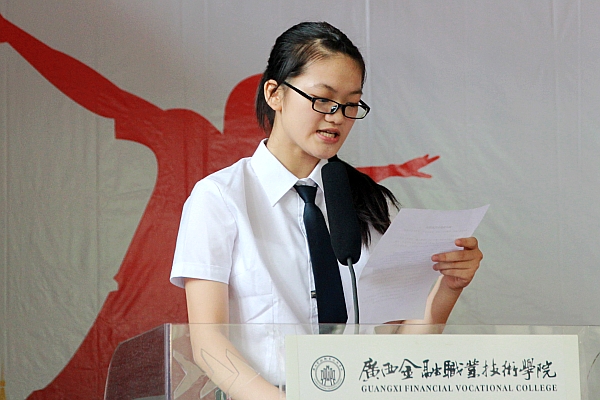 开学典礼在庄严的国歌声中拉开序幕。教师代表赵玉梅老师代表全体教职员工,热烈欢迎新同学的到来。同时,也从教师的角度,表达了对同学们的殷切期望。2014级老生代表徐子恒汇报了自己在校一年来的学习、生活情况,与新生分享了自己作为学长和过来人的宝贵心得、体会。新生代表黄冬瑾代表全体新生承诺,在银校的日子里,将努力做到勤奋学习、诚实守信,文明礼貌,锐意进取,苦练技能,早日成为一名德才兼备的中职学生。