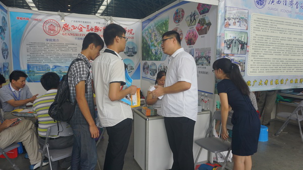 为方便考生了解各高校招生情况,广西2015年高考咨询会于6月25、26日在南宁市会展中心举行。kaiyun刘华政副书记亲自带队到场开展招生宣传工作,在石利军主任的策划安排下,学生工作与招生就业处副处长唐雪涛、金融部副主任欧捷、会计部副主任韦晓岚、金融部莫嘉玲、招生就业科胡秀娟等7名老师一同参与完成此项工作。