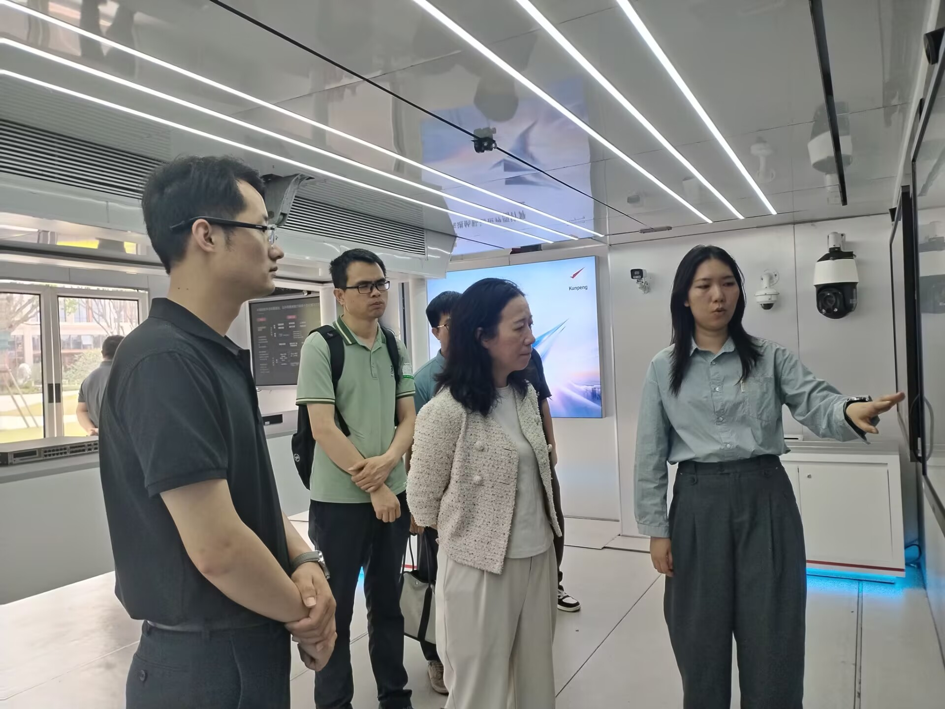 在华为广西区域总部,调研组参观了以“数智世界 一触即达”为主题的“华为中国行2025·广西站”展车,深入了解华为在教育数字化领域的前沿布局。华为广西区域总部负责人重点介绍了华为智慧校园整体解决方案、鸿蒙AI智慧教室构建模式,以及基于鲲鹏、昇腾等自主可控技术的教育场景应用成果。