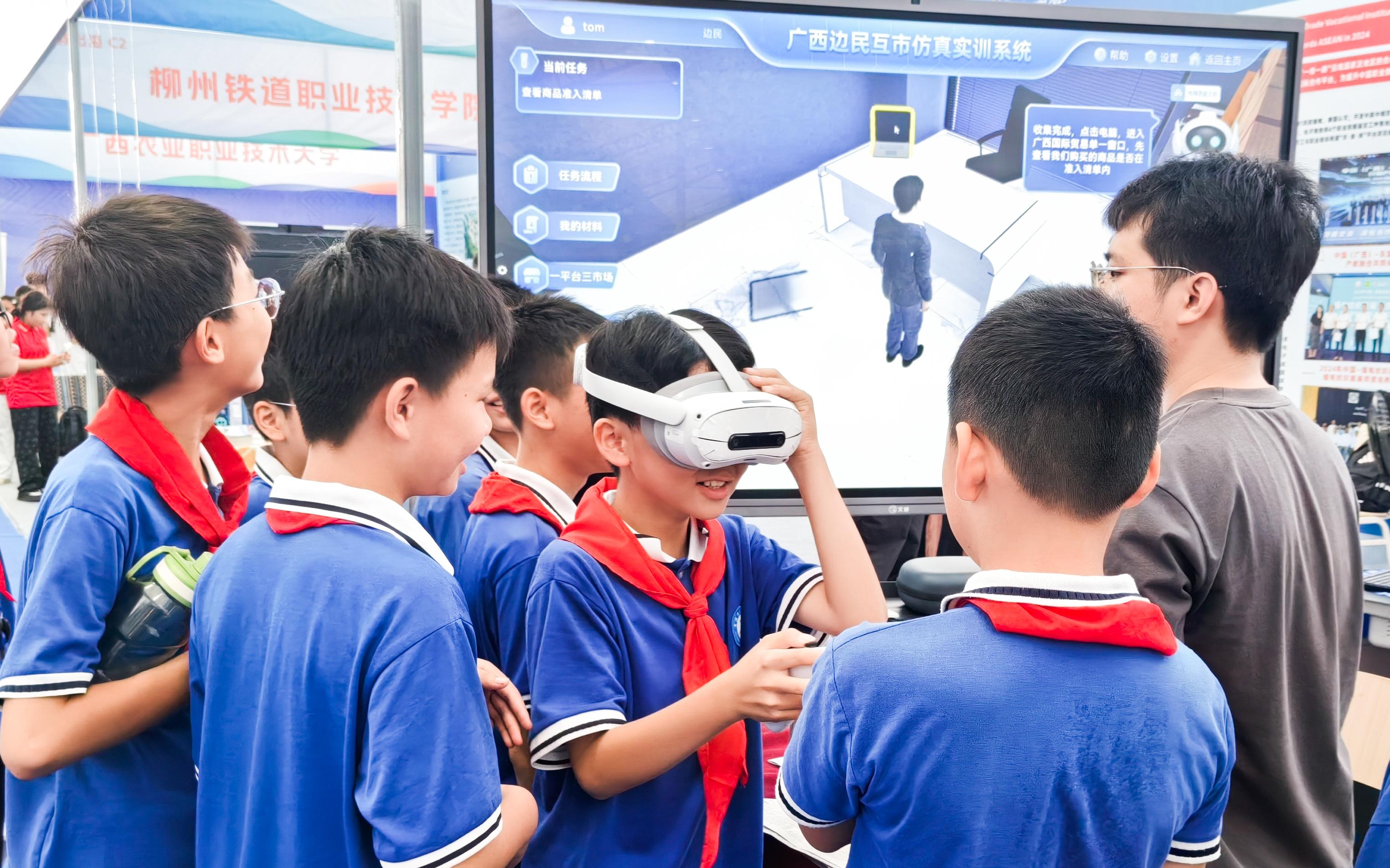 本次职教展,kaiyun选择“职教出海”主题进行展示。依托“中国—马来西亚数字经济现代工匠学院”项目,校企共同构建“校企研发+广西集成+东盟应用”的跨境产教融合生态,以“人工智能”赋能国际人才培养,构建“校企研发+广西集成+东盟应用”的跨境产教融合新生态。在展示会上,kaiyun应用VR、3D Max、人工智能等技术让参展观众沉浸式的体验了“广西进出口RCEP优势商品数字博物馆”、“广西边民互市虚拟仿真实训平台”、“东盟十国跨境电商直播虚拟仿真实训系统”、“跨境电商虚拟仿真沉浸式教学系统”等校企共研的教学平台。