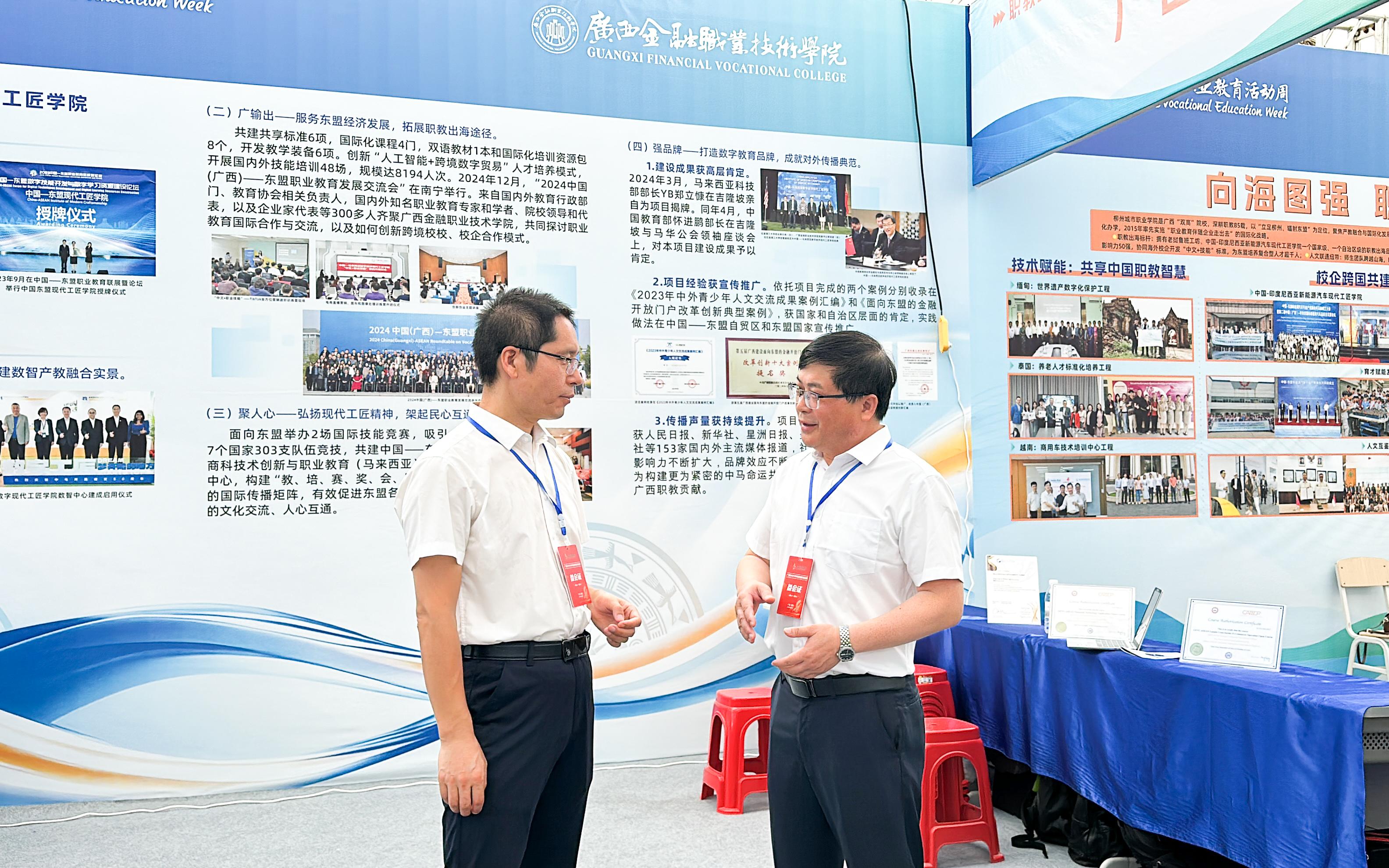 自治区教育厅副厅长伍锦昌一行莅临kaiyun“职教出海”展位参观指导。kaiyun师生代表展示了“中国—马来西亚数字经济现代工匠学院”的特色和亮点,吸引了各级领导、嘉宾以及贵港市职业院校和中小学校师生代表驻足观看。