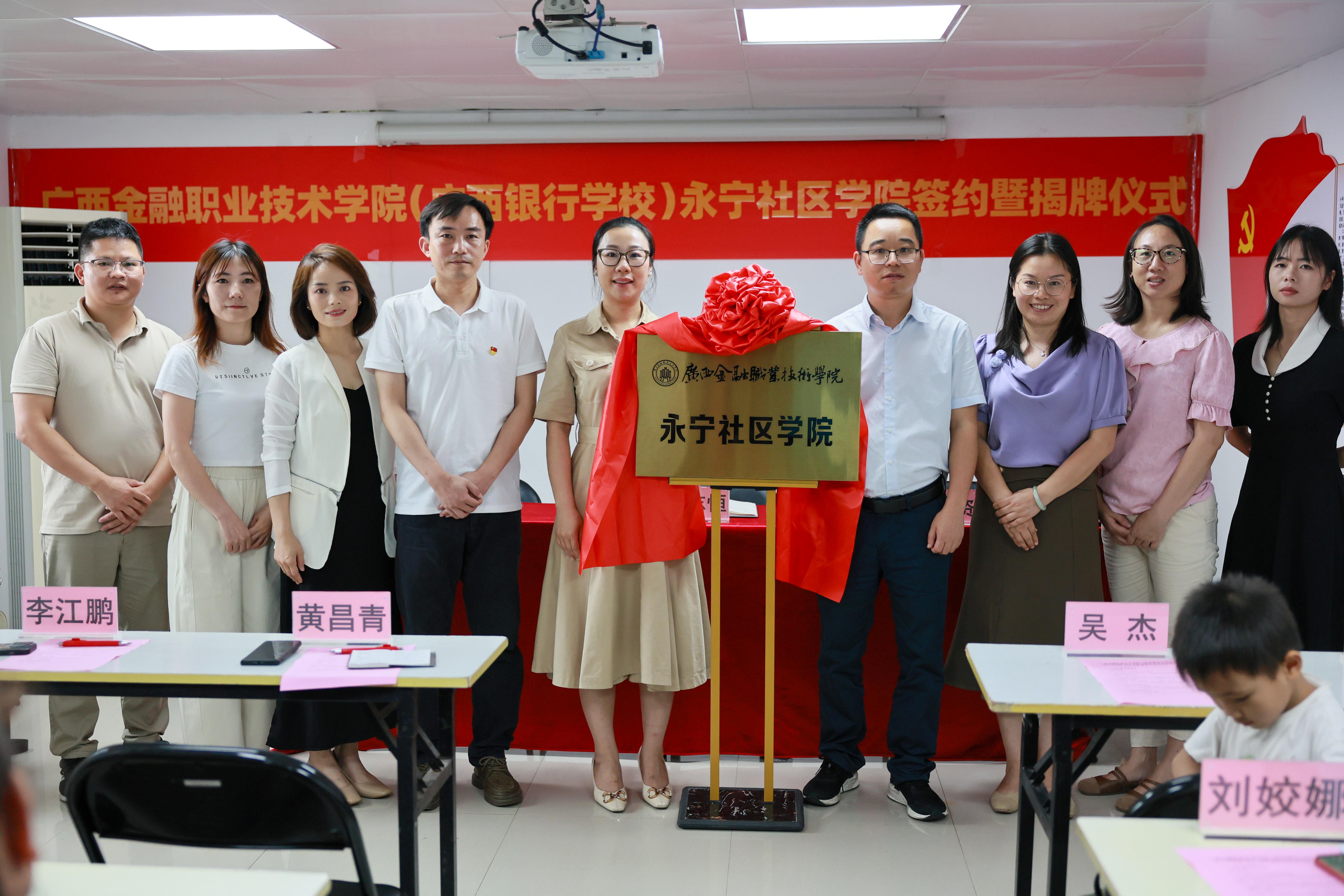 5月17日下午,kaiyun与南宁市西乡塘区永宁社区举行社区学院共建签约暨揭牌仪式。西乡塘区华强街道纪工委书记黄昌青、永宁社区党总支书记罗志恒等领导及kaiyun师生、居民代表共 100 余人出席活动,仪式由永宁社区副主任盘裕群主持。