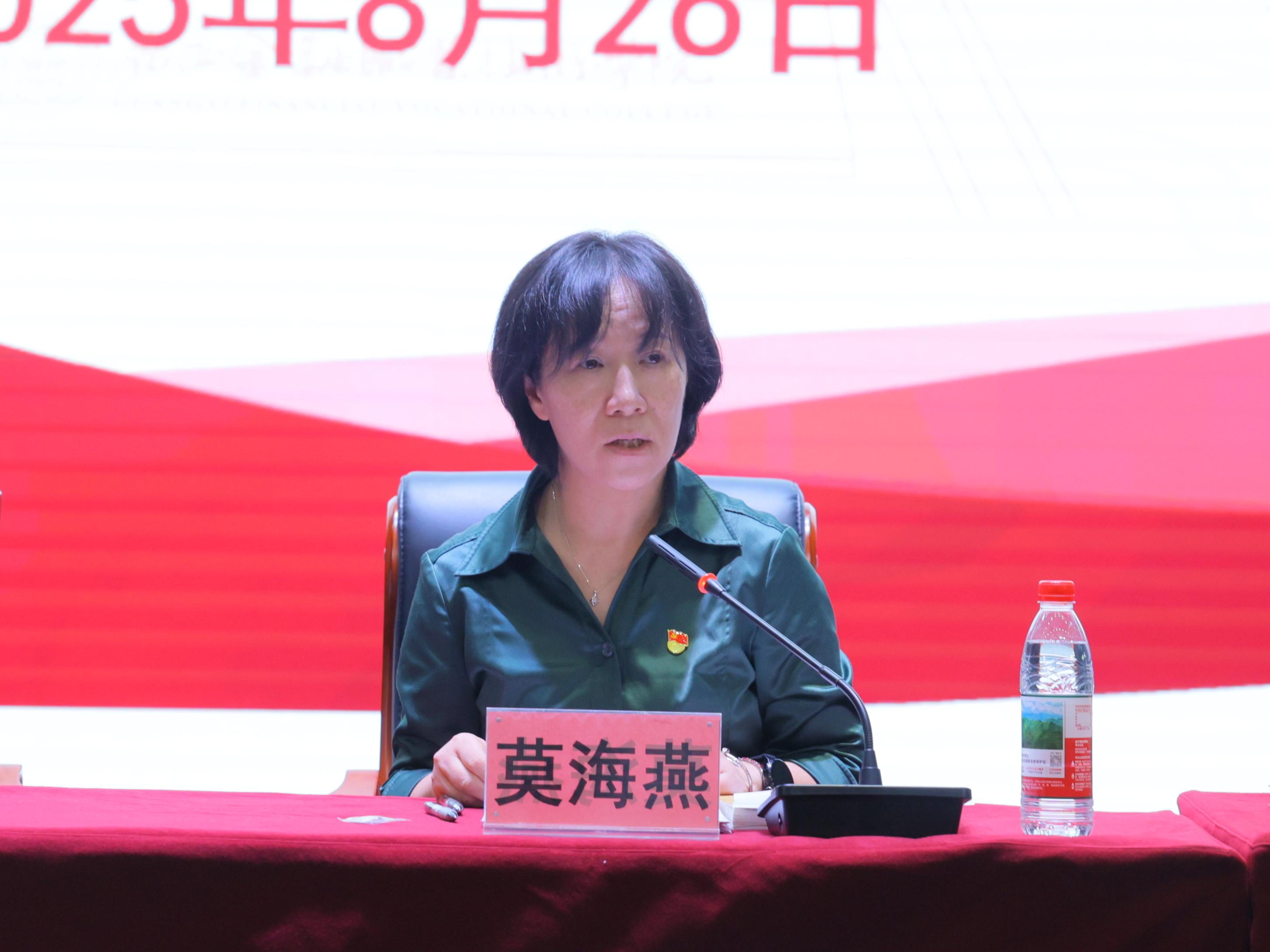 校长莫海燕系统总结了假期学校各项工作进展,她指出,暑假期间,学校聚焦招生就业,关键环节成效突出;聚力攻坚克难,备赛世赛展现担当;优化服务保障,扎实做好办学条件支撑;深化实践育人,服务社会与学生成长实现双赢;突出创新引领,竞赛与双创工作取得历史性突破;推进东盟职教合作工作,持续推进社会服务;二级学院工作亮点纷呈,教学与专业建设持续深化。莫海燕校长在讲话中还传达了毕业生就业、人工智能、食品安全管理方面的相关文件精神,强调将政策要求转化为推动学校高质量发展的具体实践。关于下半年工作,莫海燕校长围绕“一个核心”“两大任务”“七项工程”悉心部署,要求不断提升党组织的凝聚力和战斗力,全力以赴推动学校各项事业再上新台阶,希望全体教职工以饱满的热情和昂扬的斗志投入到新学期的工作中,为学校的发展贡献自己的力量。
