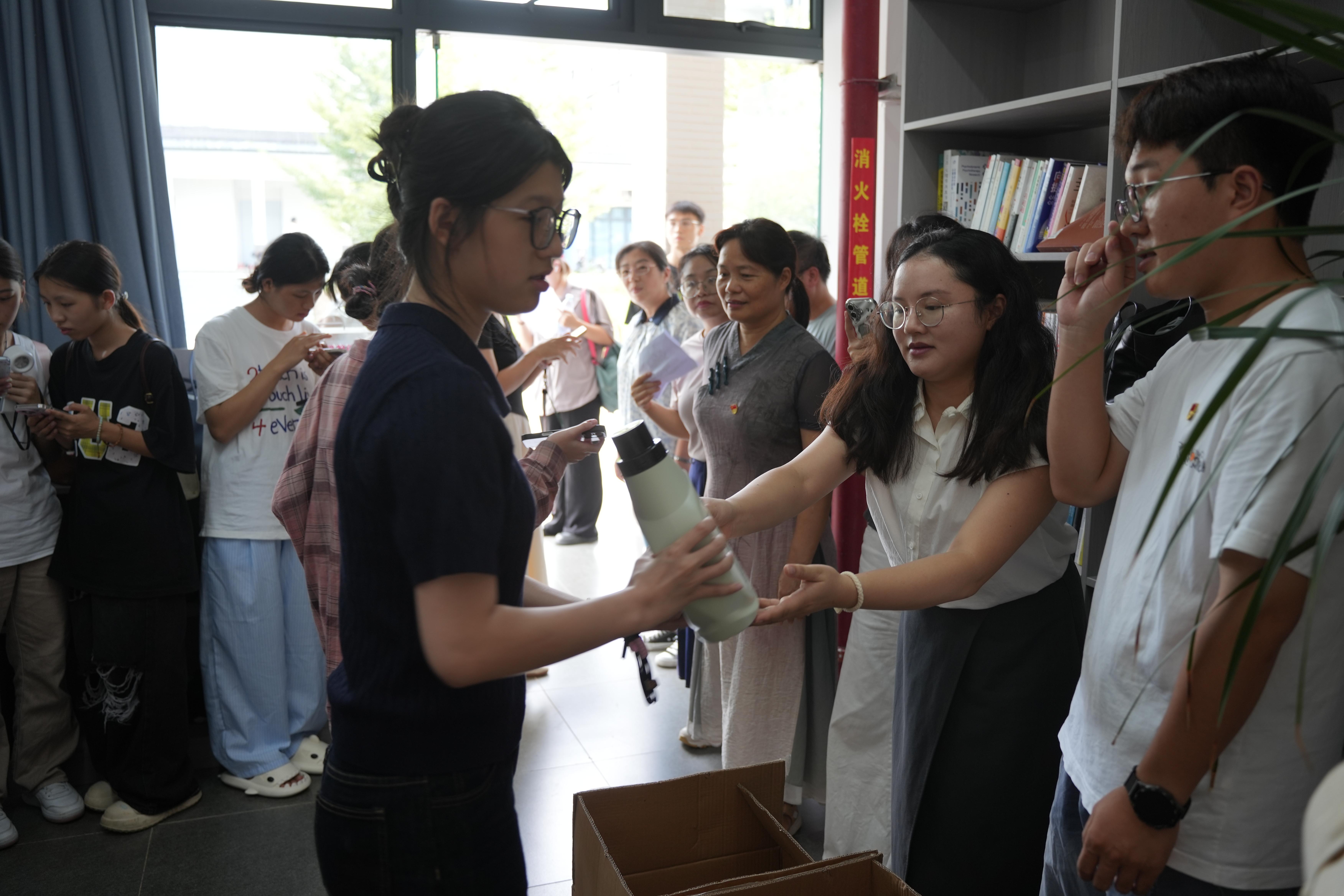 本次活动设置知识宣讲和知识竞答两个环节。在宣讲环节,马克思主义学院王幽含、钟雨晴两位思政课教师围绕抗日战争史中的关键事件与铸牢中华民族共同体意识的核心内涵,以“微型讲解+即时互动”的形式展开宣讲,引导师生在问答中感悟历史厚度与精神力量,来自人工智能学院的杨晅同学、投资与保险学院的汪子鹤同学和张凯同学现场分享了参加宣传学习的收获和体验。知识竞答环节则将学习热情推向高潮,师生通过扫描现场二维码进入答题系统,每当屏幕显示“答题成功”,参与者便能即时领取定制书签、主题文创等精美礼品,在轻松竞技中巩固所学,现场掌声与欢笑声此起彼伏,让理论学习在生动实践中入脑入心。
