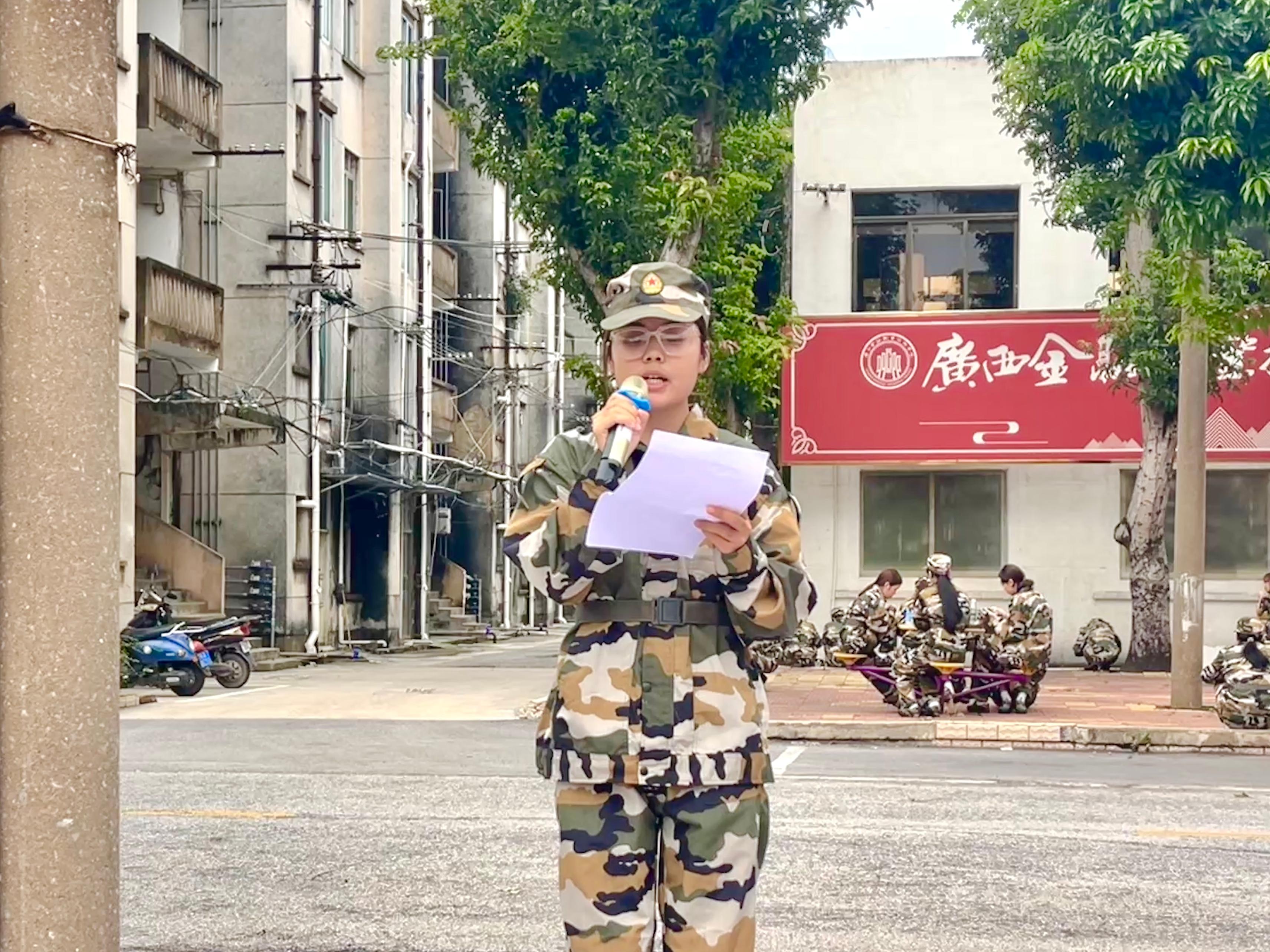 两校区军训团团长莫明锐、张磊在发言中要求全体受训学生严守训练纪律,做到令行禁止,坚决服从教官指挥;以坚韧之志迎挑战,以顽强之心克难关;在团队中学会担当、传递温暖,成为荣辱与共的“铁血集体”。军训团团长代表全体教官承诺以最严谨的执教态度、最科学的教学方法、最饱满的军人热情完成本次军训任务。