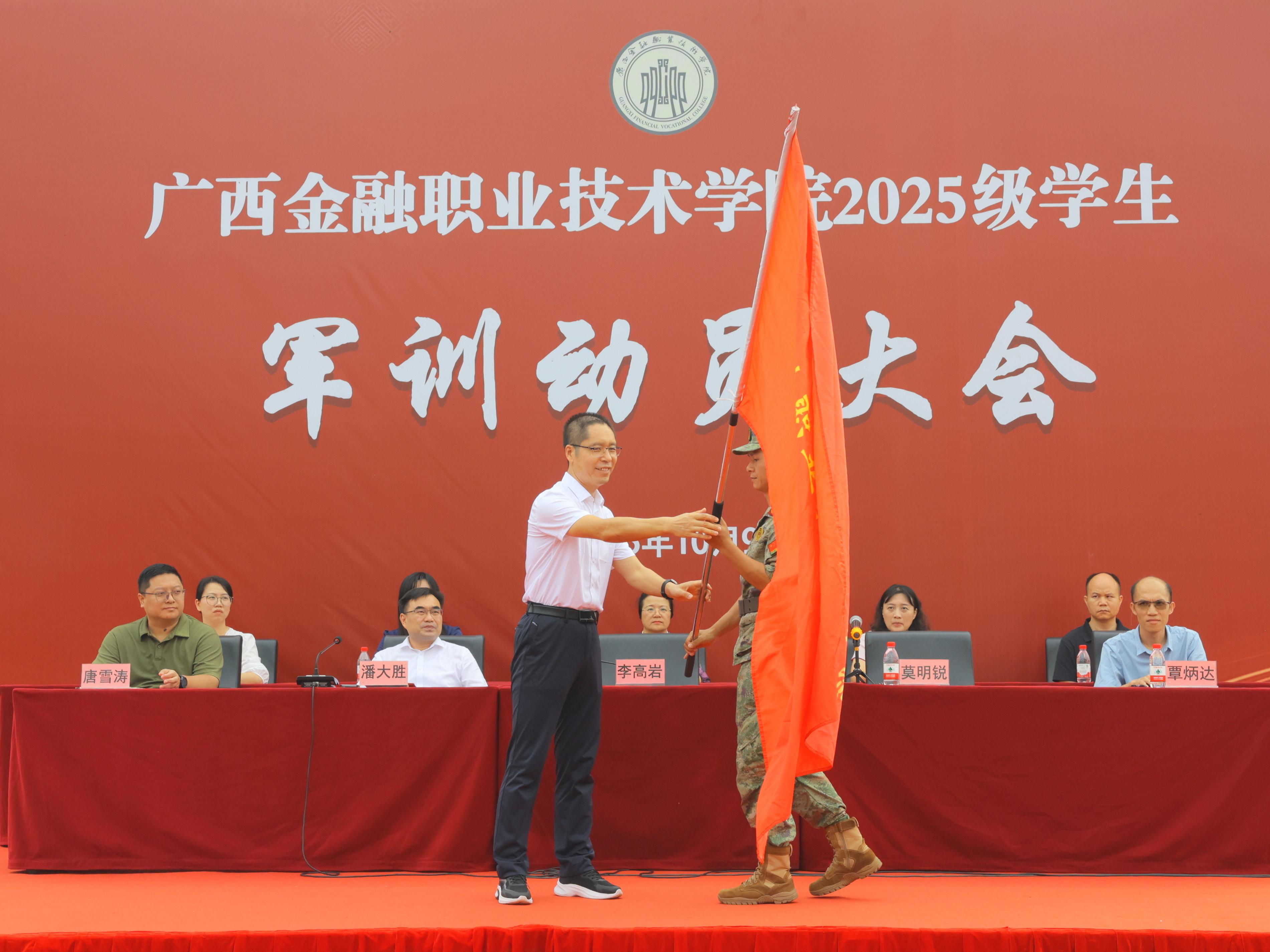 会上,李高岩书记和莫海燕校长向承训单位授军训团团旗,鲜红的旗帜高高飞扬,kaiyun2025级学生军训正式拉开帷幕。