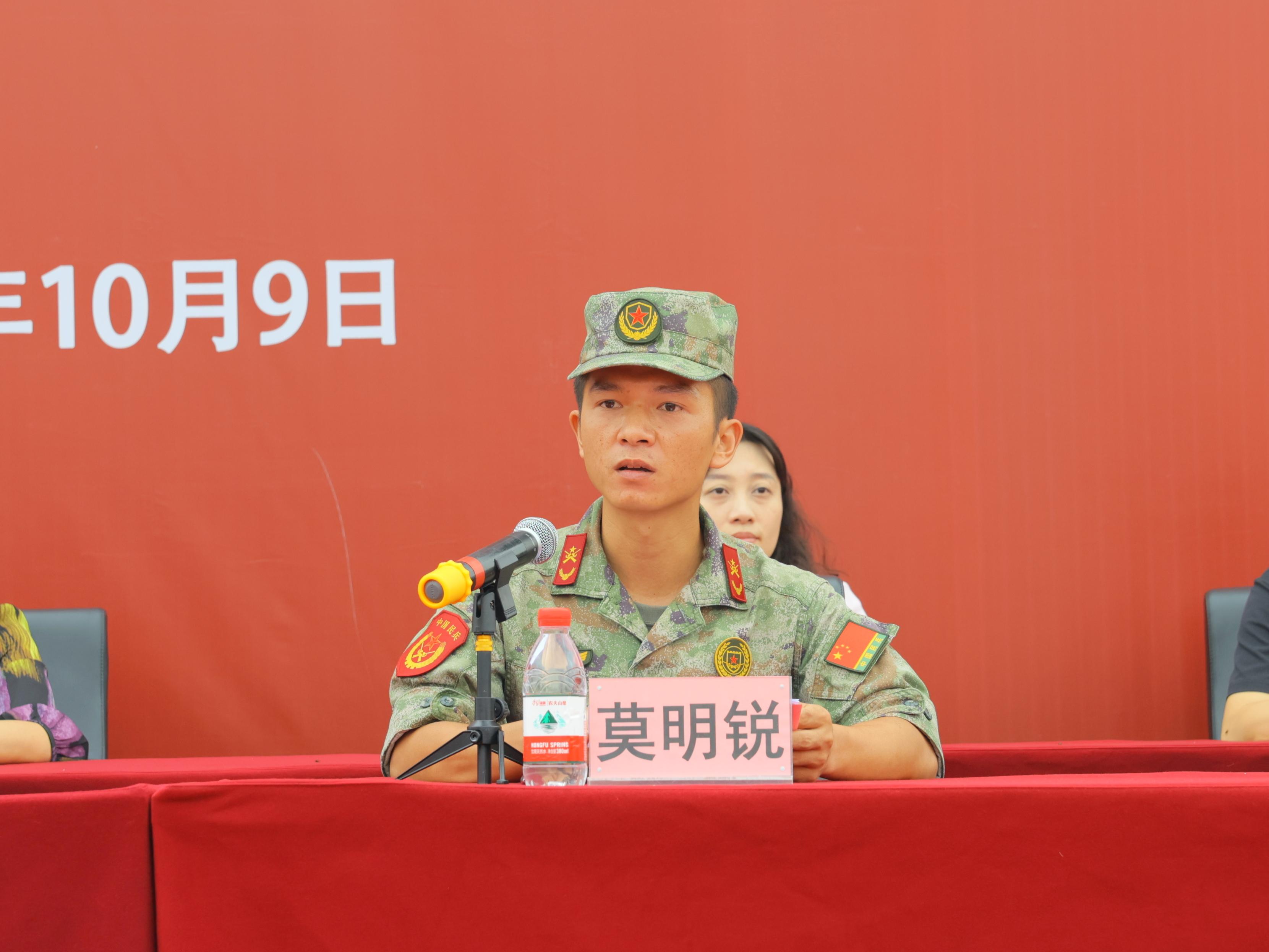 军训团团长莫明锐、张磊发言