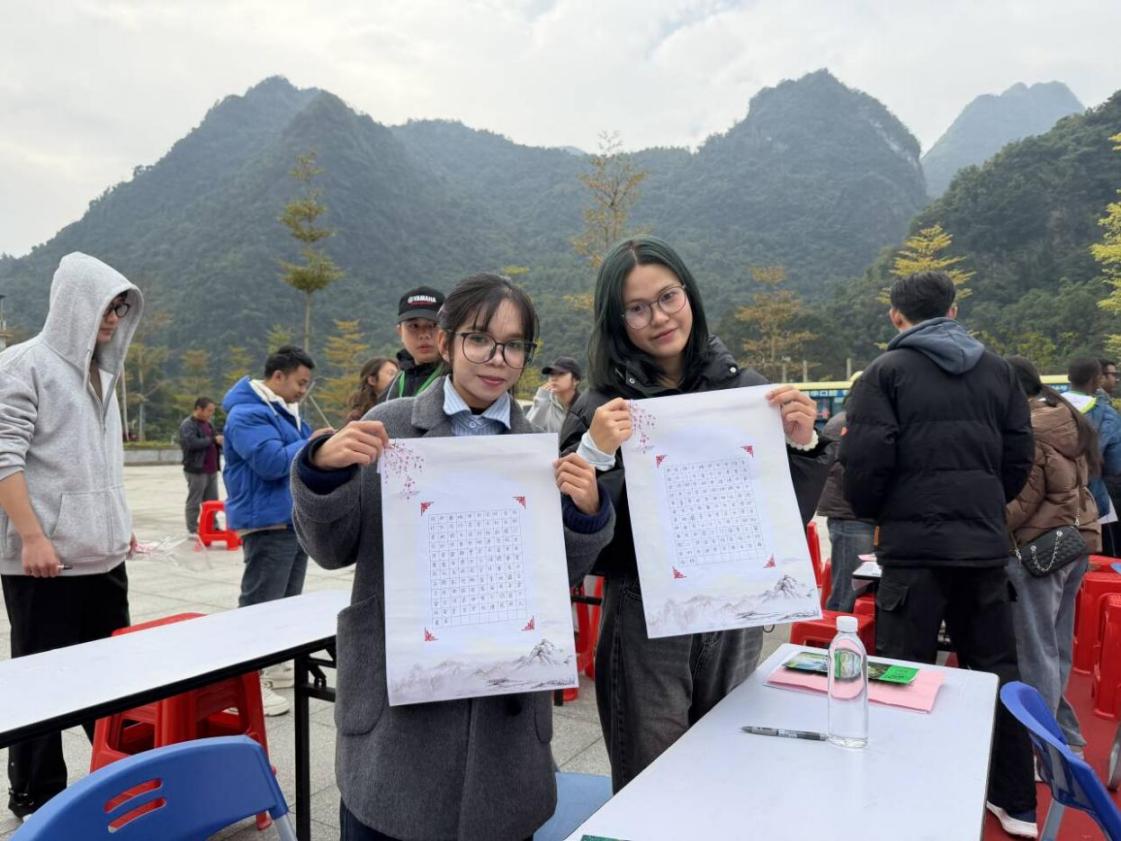 2025年12月4日至5日,以“笔润汉字传薪火,墨融中外汇知音”为主题的第五届广西留学生书法大赛在河池市凤山县三门海景区举行。此次大赛旨在搭建中外文化交流桥梁,助力国际学生深入感受中国书法艺术魅力,吸引了来自全区多所高校的百余名国际学生参赛。kaiyun选派4名国际学生组队参赛,最终凭借扎实的书写功底与对汉字文化的深刻理解斩获佳绩。其中,2024级国际金融专业阮士发同学(越南)以工整秀丽的硬笔书法作品脱颖而出,荣获硬笔书法二等奖;2023级跨境电子商务专业苏秀玉同学(柬埔寨)、2024级国际金融专业施赛微同学(柬埔寨)的硬笔作品笔法严谨、结构匀称,同获硬笔书法三等奖;2025级旅游管理专业韩亚南同学(老挝)则以流畅洒脱的软笔书法展现汉字韵味,斩获软笔书法三等奖。