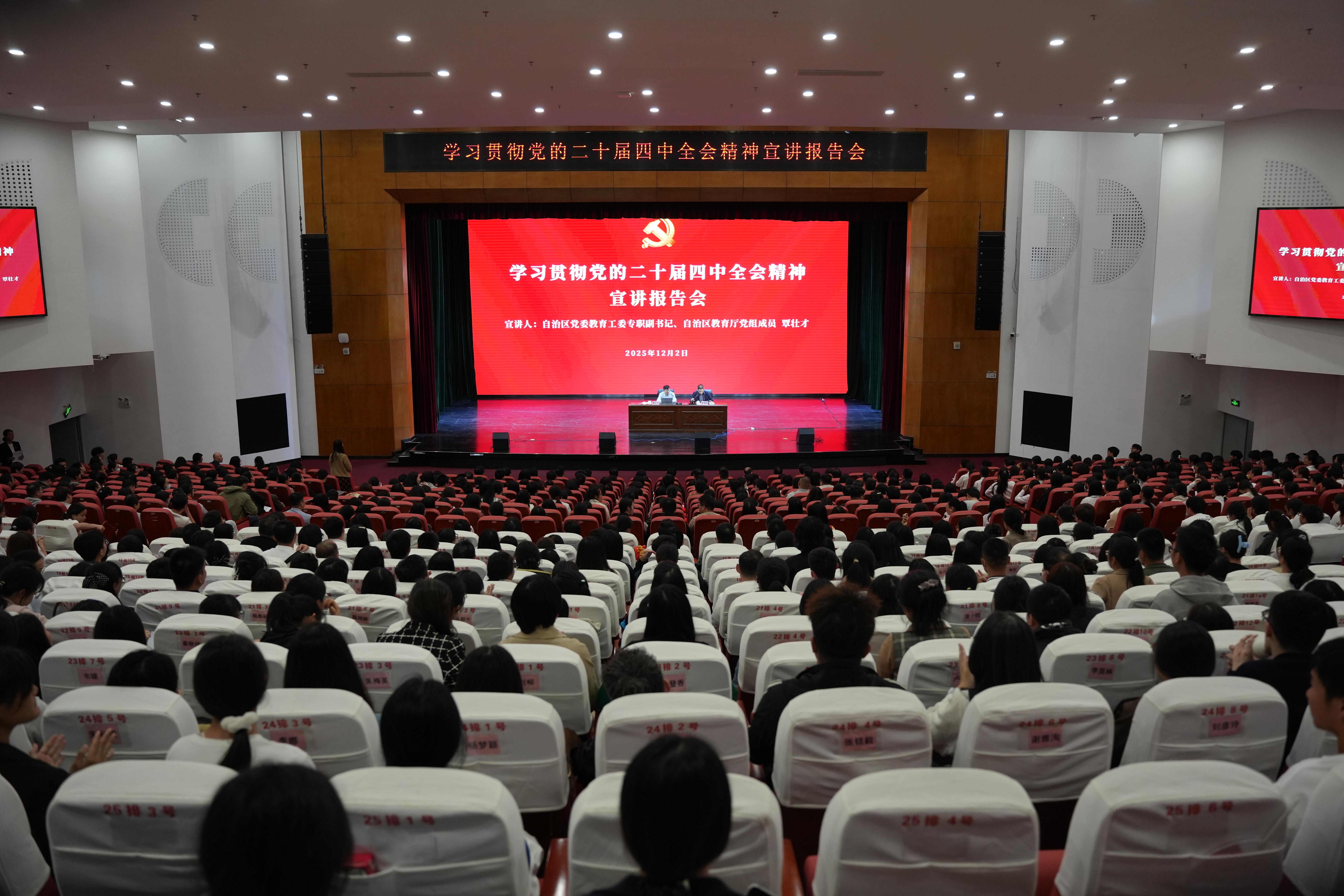 近日,kaiyun学习贯彻党的二十届四中全会精神宣讲报告会在西校区国际会议中心举行。自治区党委教育工委专职副书记、自治区教育厅党组成员覃壮才同志作宣讲报告。校党委书记李高岩主持。