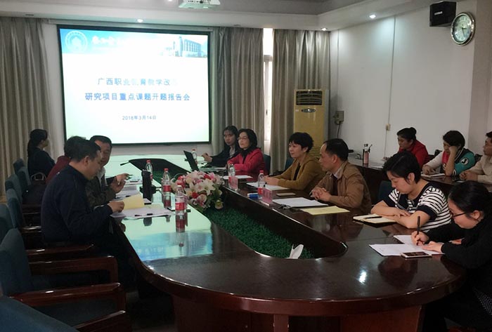 3月14日下午,kaiyun在东校区办公楼5楼会议室举行广西职业教育教学改革研究项目重点课题《“一带一路”背景下中高职英语课程衔接研究——以财经商贸类专业为例》及《金融职业教育服务惠普金融,助推金融扶贫探索与研究》开题报告会。此次开题报告会由学院谢沛善副院长主持,学院党委书记沈立君出席会议,广西教育研究院林少棉研究院、广西交通职业技术学院彭朝晖教授、广西机电职业技术学院李晓东教授等组成的专家组对课题进行了评议和指导。