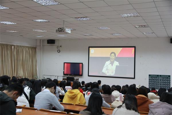 陈媛教授分别从全面深入学,做到懂通识;进入新时代,认识新矛盾;领会新思想,开辟新境界;聚焦新目标,开启新征程四个方面,通过最新的大数据、国内外社会形态及政治经济对比、生动详实的案例,结合自身学习党的十九大精神心得体会为大家详细解读了十九大精神,使广大师生对十九大精神有了更深的领悟。陈教授认为,在学习过程中,要多思多想,努力掌握党的十九大精神的政治意义、历史意义、理论意义和实践意义。要注重采取理论和实践、历史和现实、当前和未来相结合的方法,从我国实际出发,遵循我国发展的逻辑,把每一点都领会深、领会透。陈教授强调,习近平总书记提出的“为中国人民谋幸福,为中华民族谋复兴”这一共产党人的初心和使命,是激励中国共产党人不断前行的根本动力,全党同志要永远与人民同呼吸、共命运、心连心,永远把人民对美好生活的向往作为奋斗目标,以永不懈怠的精神状态和一往无前的姿态,继续朝着实现中华民族伟大复兴的宏伟目标前进。