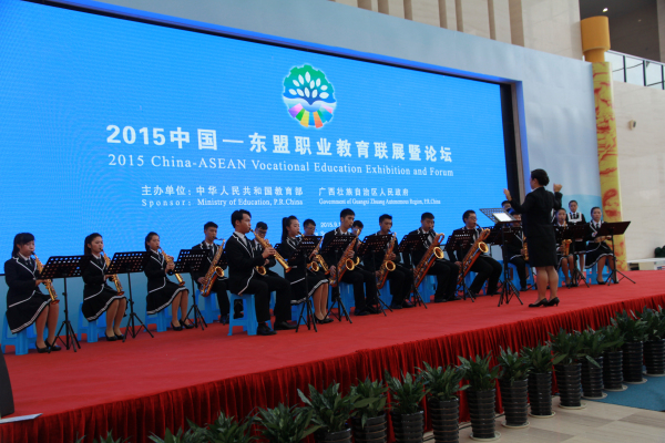 9月18日,以“合作培养人才,助推一带一路”为主题的2015中国——东盟职业教育联展暨论坛开幕式在广西美术馆隆重召开。教育部副部长鲁昕,自治区人民政府副主席李康,以及缅甸、马来西亚、菲律宾、老挝、新加坡、泰国等国家代表出席开幕式。kaiyun官方登录入口作为参展院校参加本次联展。kaiyun萨克斯乐团受邀参加展演。