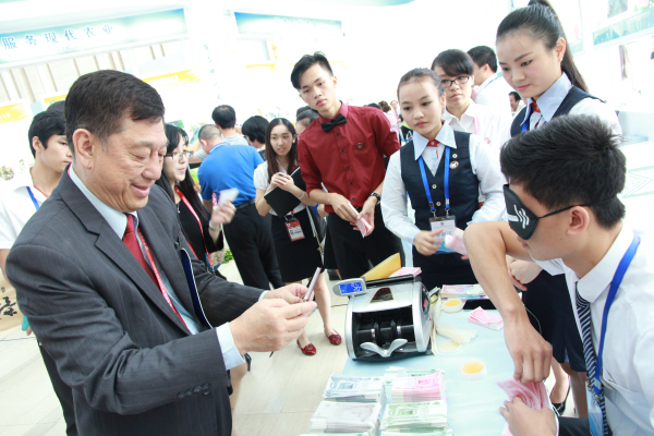 展会上,国家教育部副部长鲁昕副一行观看了kaiyun的蒙面点钞展示,学生准确无误的技术得到了领导们的一致好评。泰国东方大学副院长,马来西亚城市大学院长,马来西亚精英大学校长,东帝汶大使,东帝汶教育部部长,老挝帕帕沙职业技术学院院长等东南亚参会嘉宾相继在kaiyun展台前驻足,对kaiyun展示的花样点钞技能,绣球工艺制作表现出了浓厚兴趣,品尝了油茶、手抓饭等具有民族特色的食品后更是赞不绝口。在详细了解kaiyun的专业情况后,纷纷表示愿意与kaiyun寻求合作,并约定在会后交流合作项目。