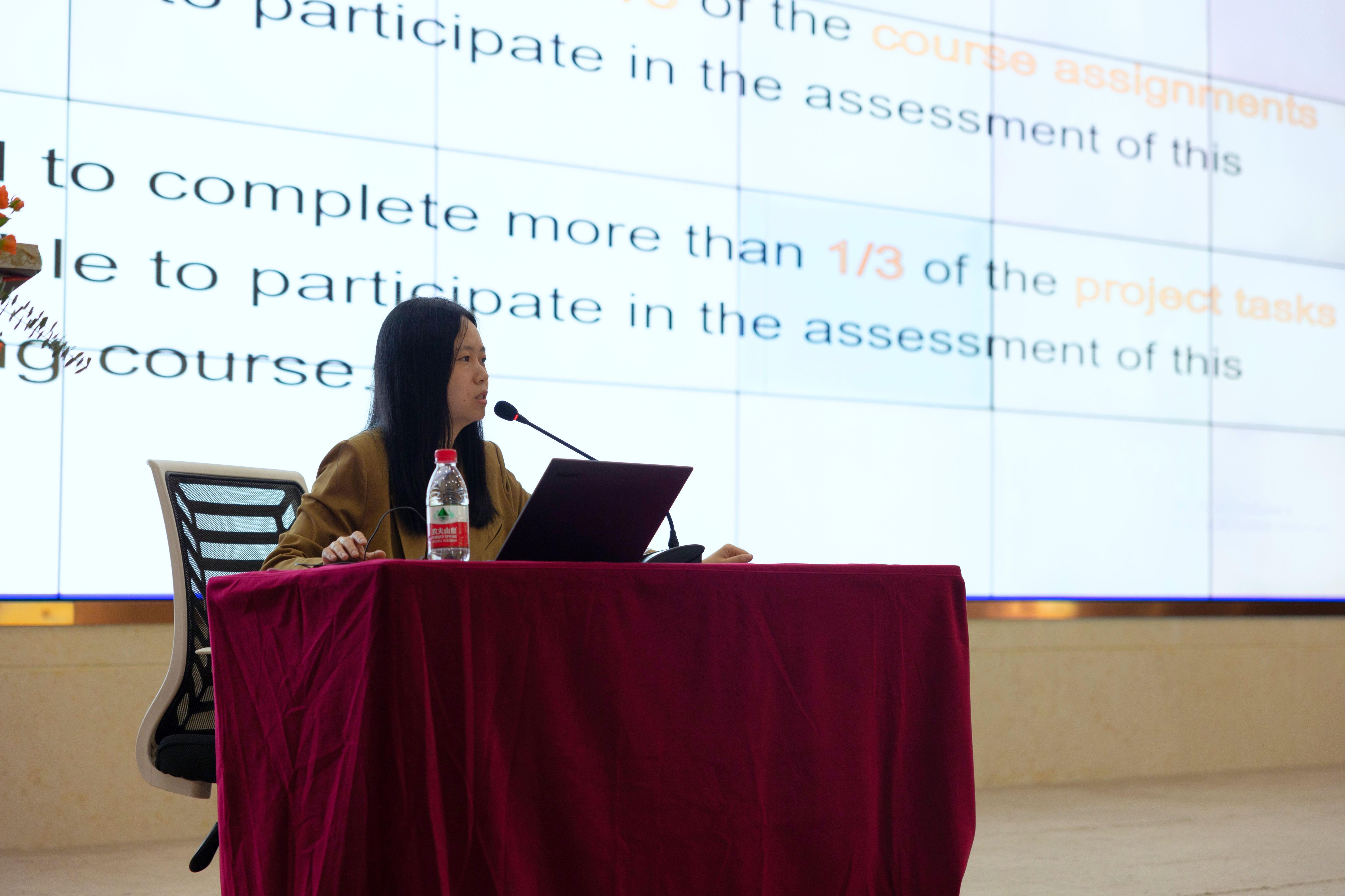 开学典礼结束后,学校进行入校教育。由教务科研处曾静老师向国际学生介绍kaiyun关于国际学生的教学管理措施。由学工处学生科蒋凯老师向国际学生介绍校园管理方面的内容。